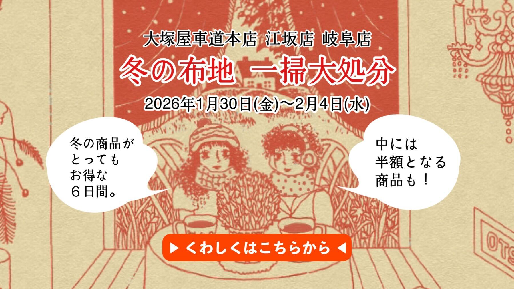 【セール予告編】冬物生地や手芸材料がお買い得!「大塚屋・冬の布地一掃大処分」