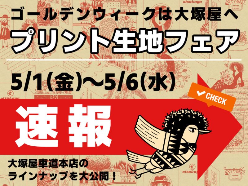 ゴールデンウィークは大塚屋へ!「プリント生地フェア」予告編(5/1-5/6)