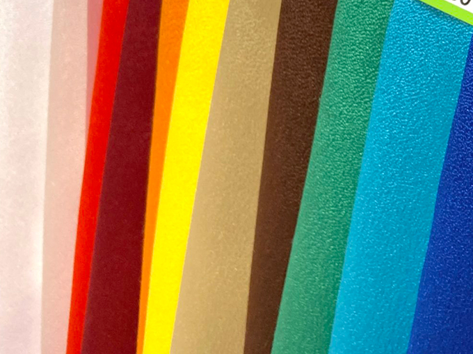 この一角には、ポリエステルで作られた様々な「合繊服地」がまとめられています。