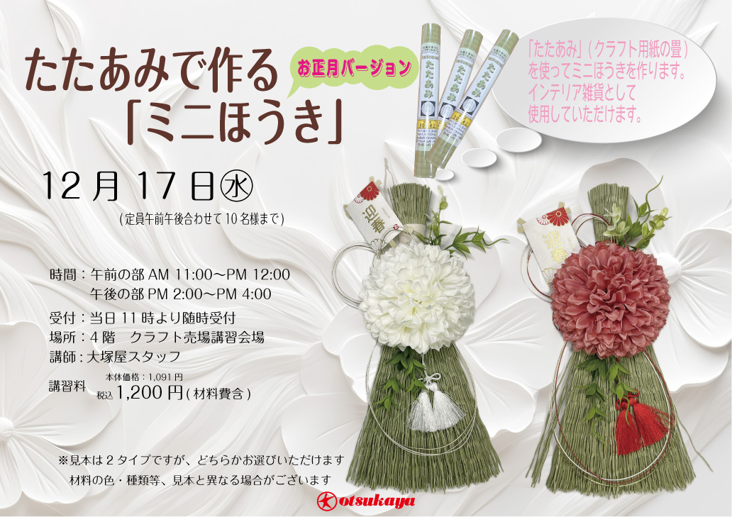 たたあみで作る「ミニホウキ」 車道本店4Fクラフト売場1217