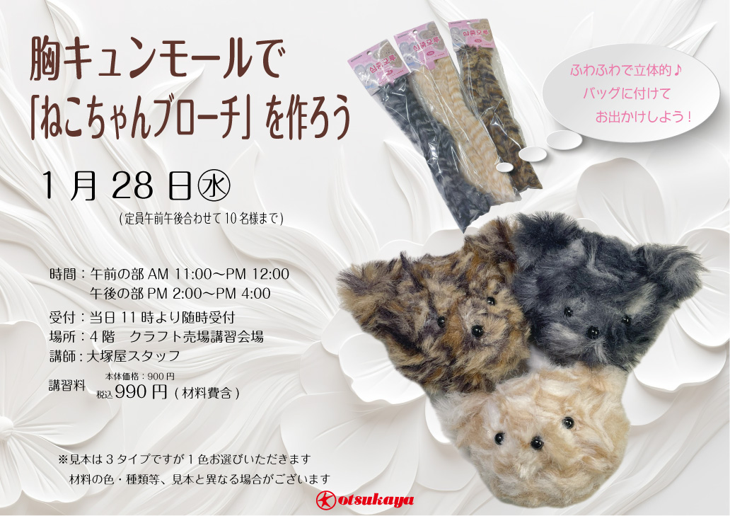 胸キュンモールで「ねこちゃんブローチ」を作ろう 車道本店4Fクラフト売場0128