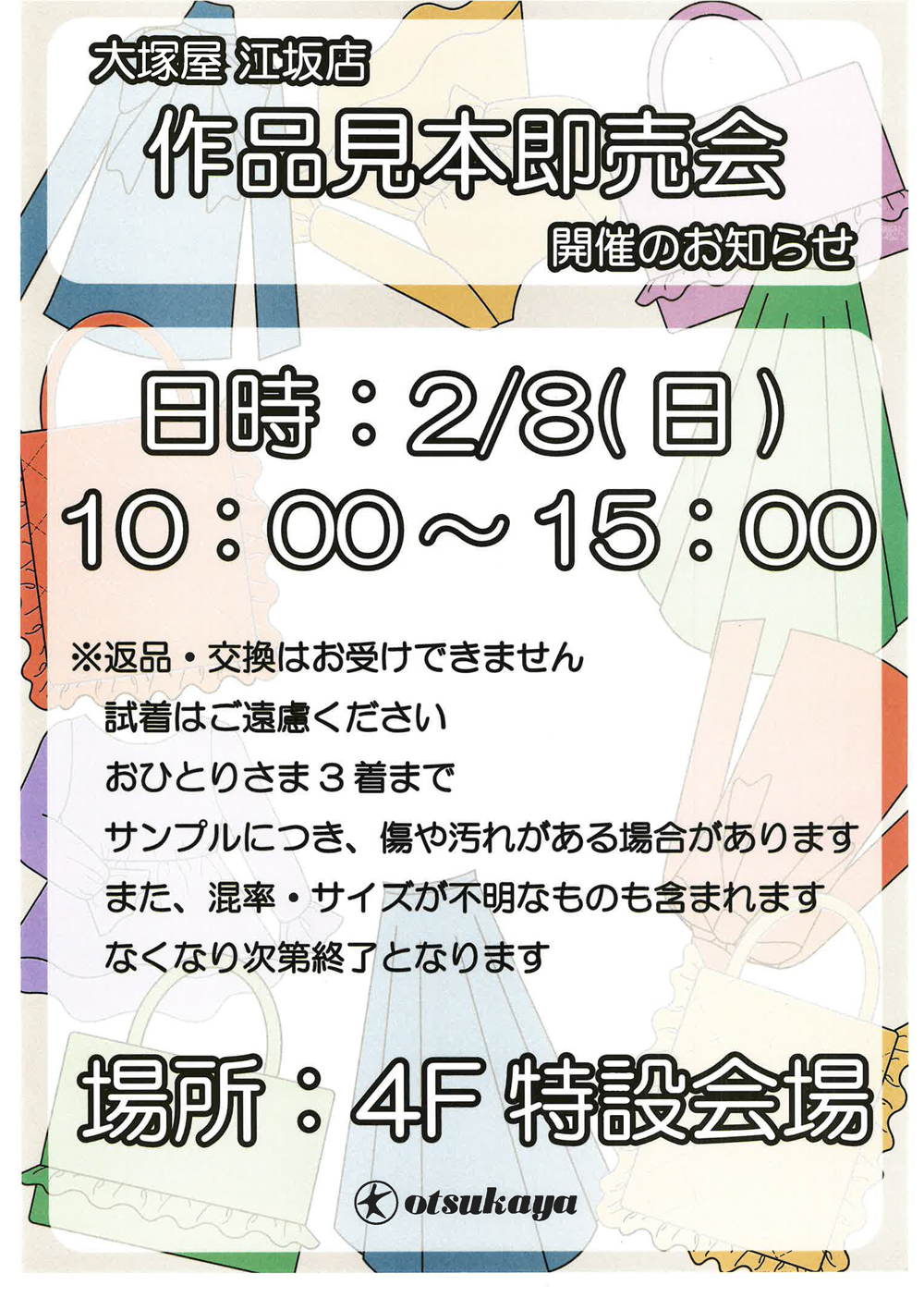 2月8日(日)に「作品見本即売会」を開催します✨️