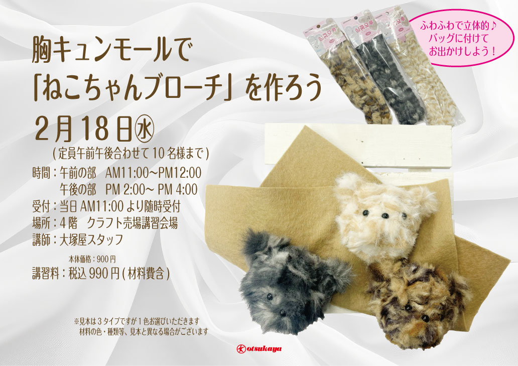 胸キュンモールで「ねこちゃんブローチ」を作ろう 車道本店4Fクラフト売場0218