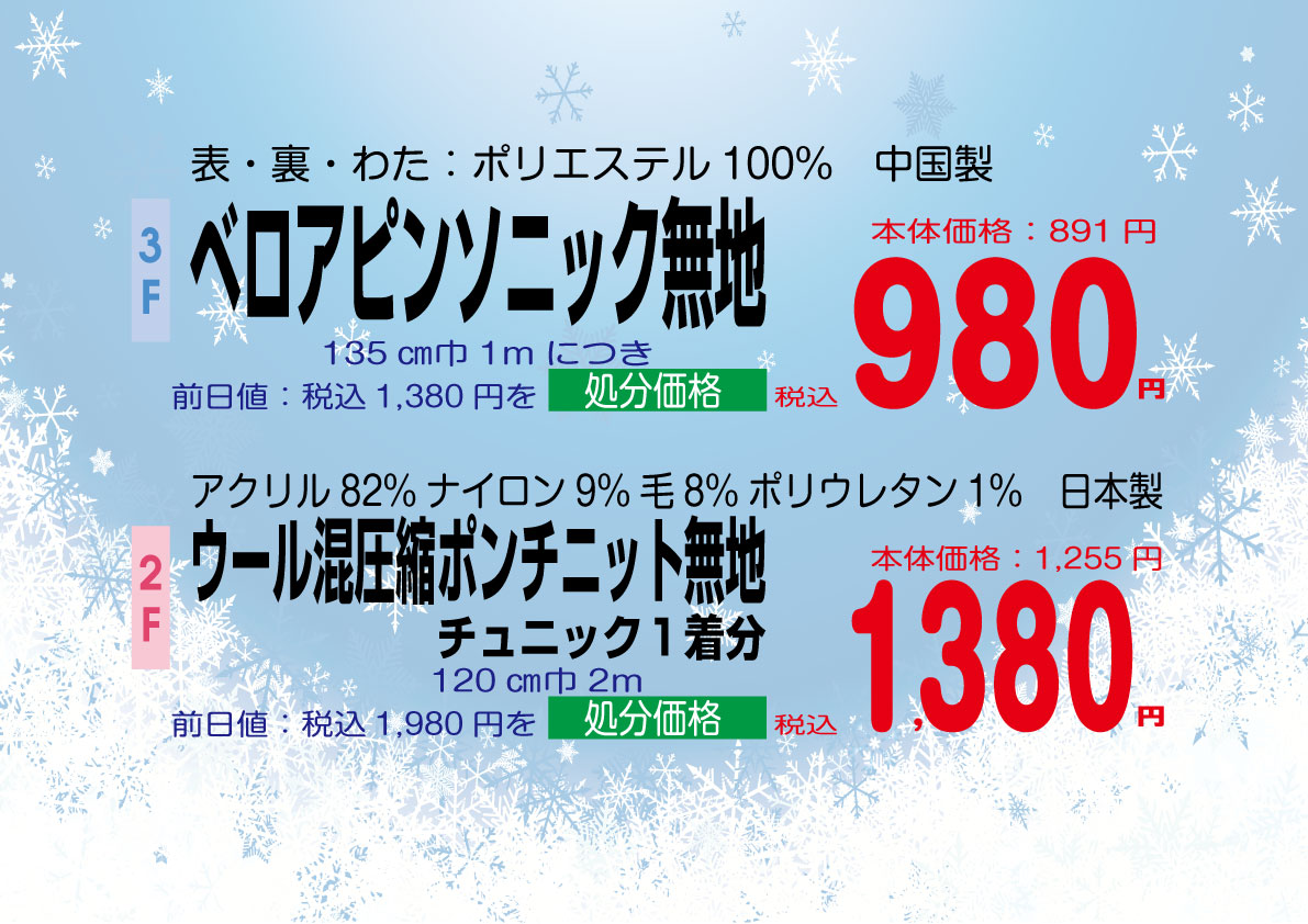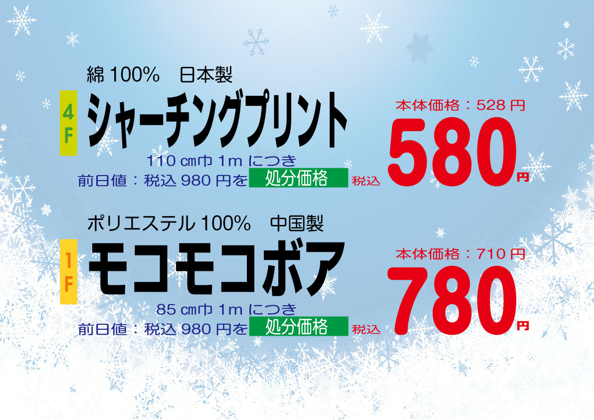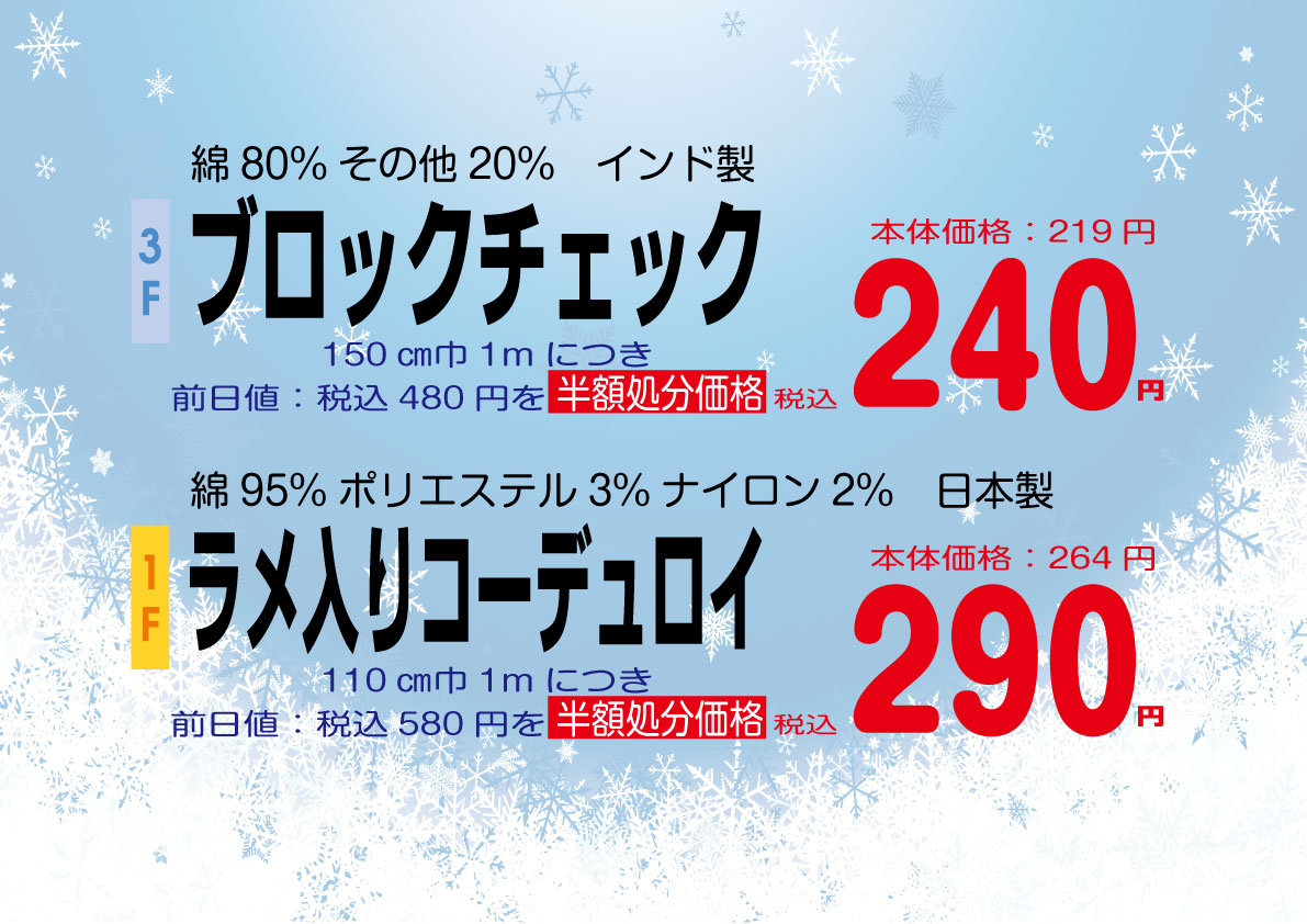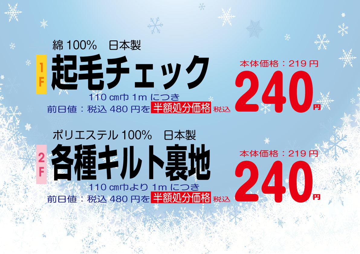 【セール予告編】冬物生地や手芸材料がお買い得!「大塚屋・冬の布地一掃大処分」