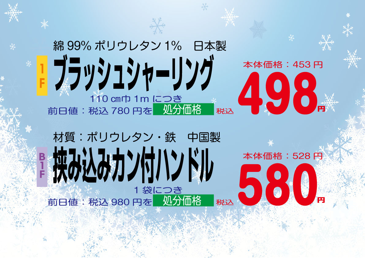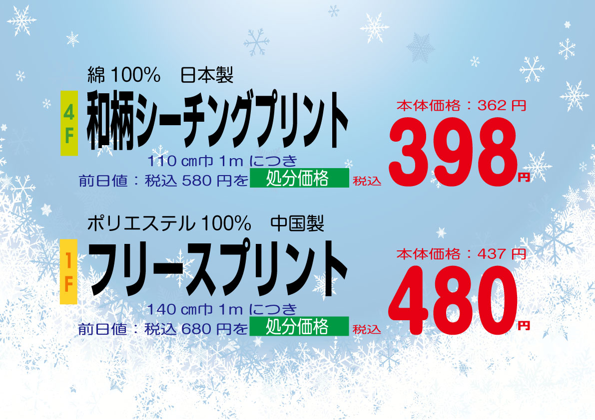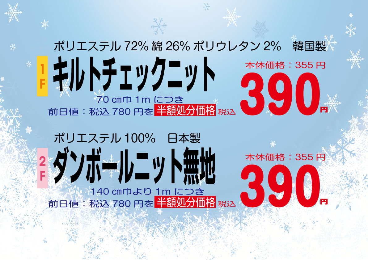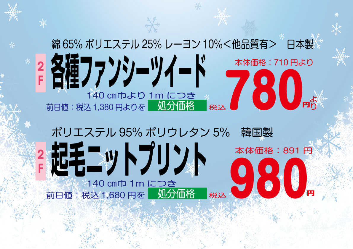 【セール予告編】冬物生地や手芸材料がお買い得!「大塚屋・冬の布地一掃大処分」