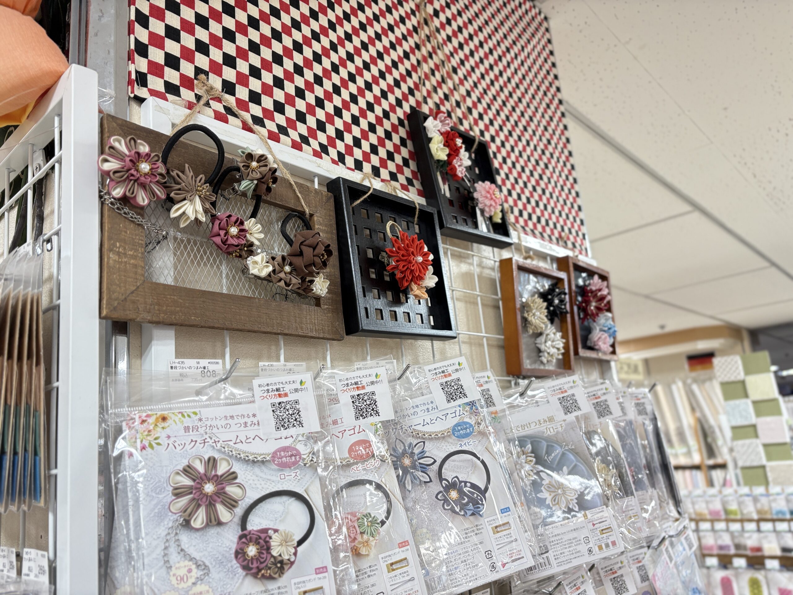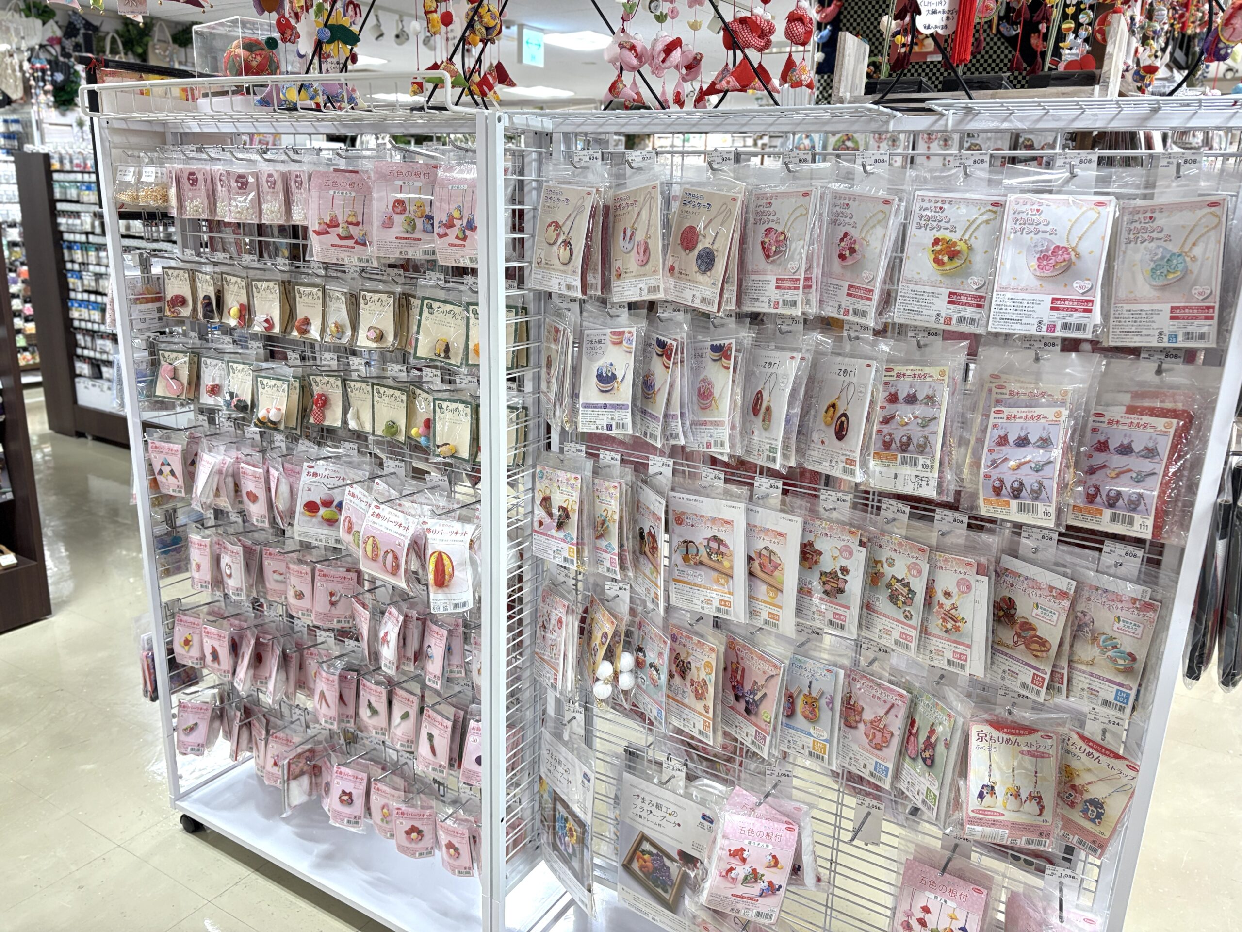 また、こちらのつまみ細工コーナーでは、キットも豊富に取り揃えているのが特長です。