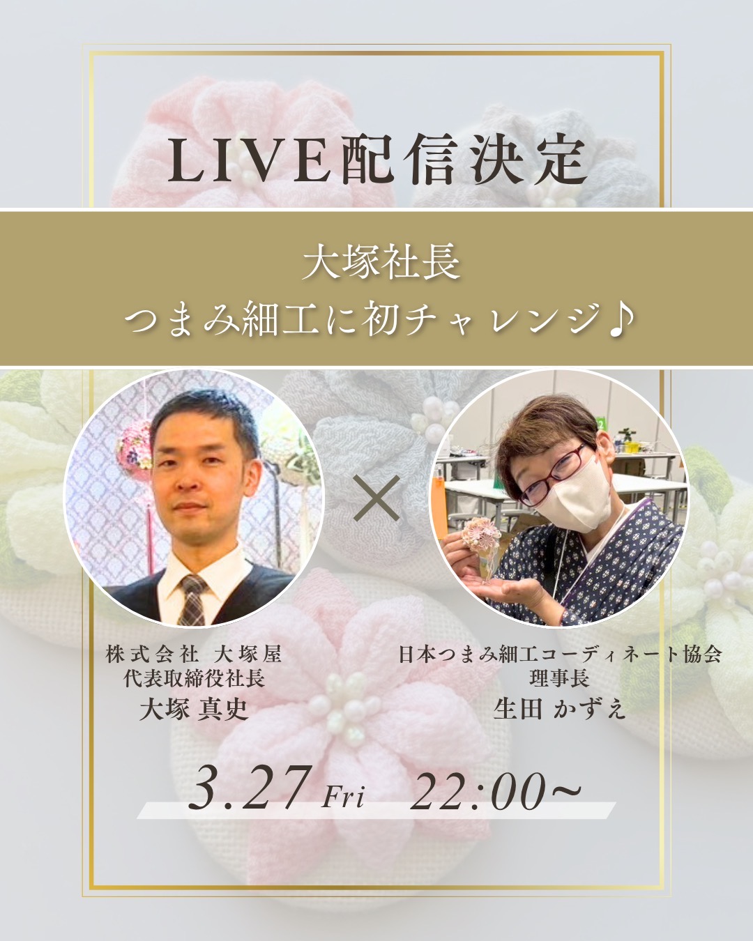 展示や、ワークショップ、SNS配信などをお楽しみいただきつつ、ぜひ大塚屋車道本店4階 つまみ細工コーナーにお越しくださいませ。