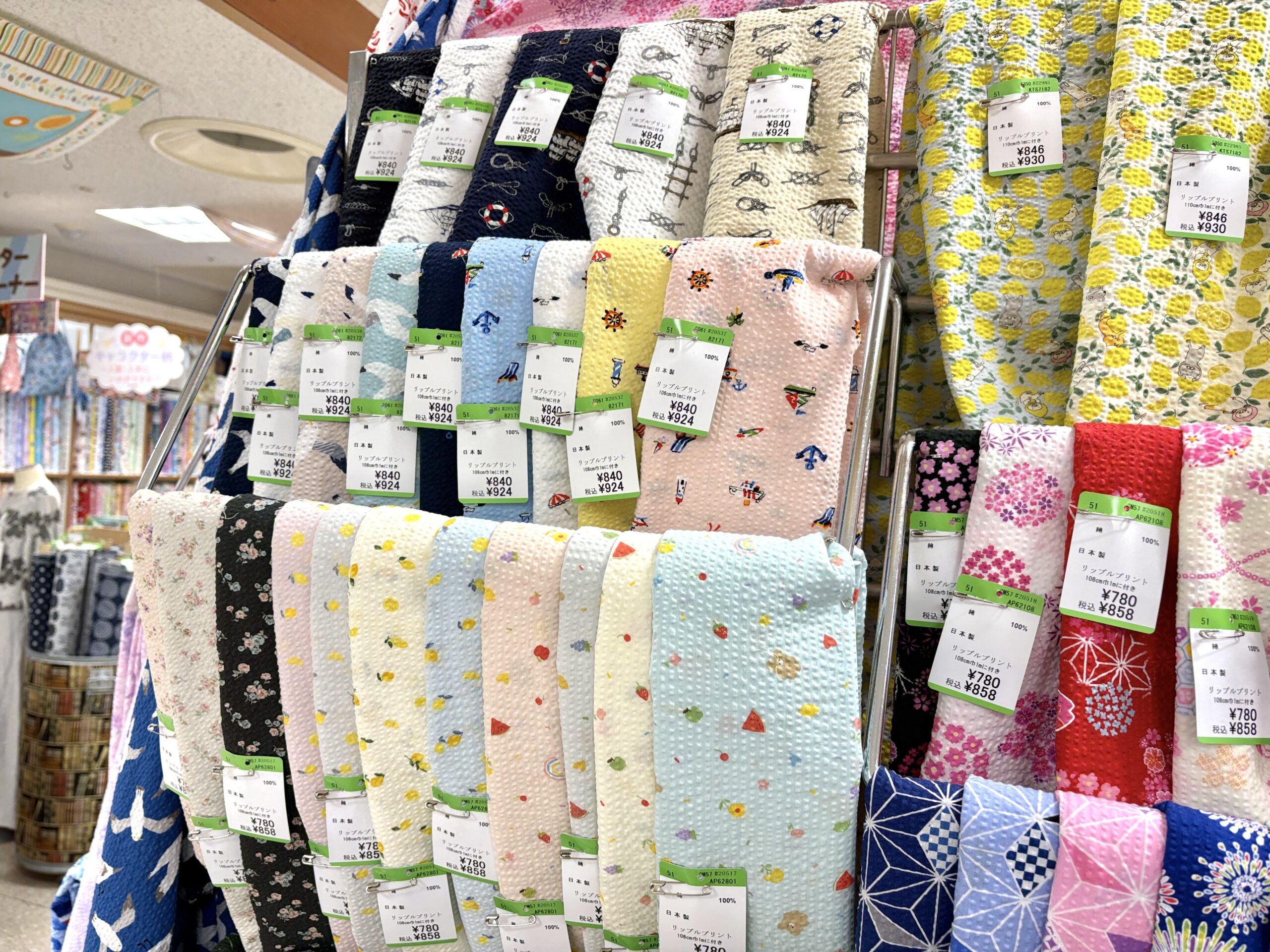 また、大塚屋江坂店・岐阜店でもたくさんのリップル生地を販売しています。(ラインナップは多少異なります)