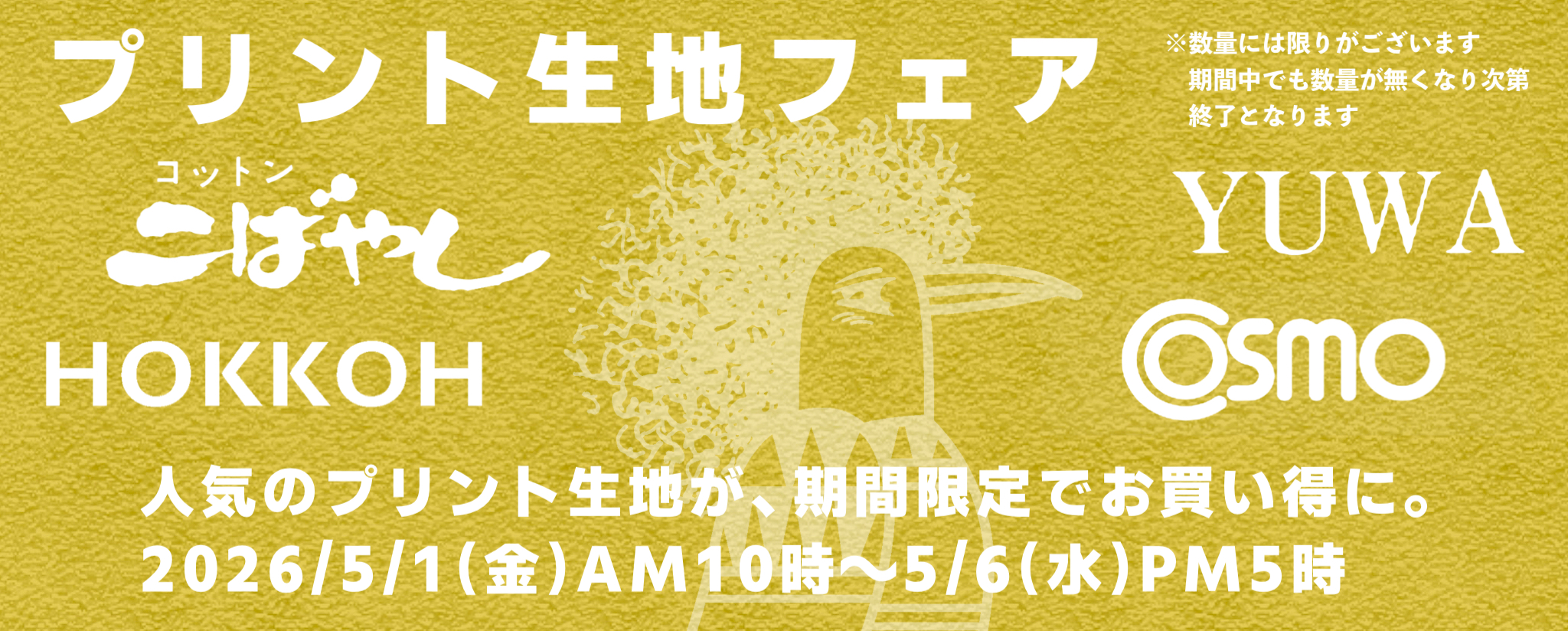 いよいよ2026年5月1日金曜日より始まります、大塚屋のゴールデンウィークイベント「プリント生地フェア」。