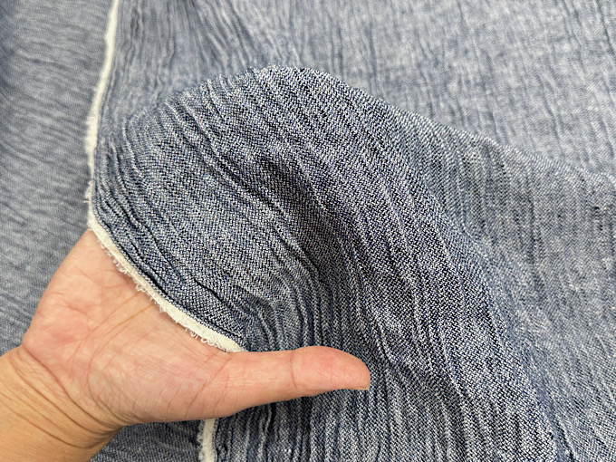 岡山児島で洗いをかけた近江リネン先染水撚りシャンブレー