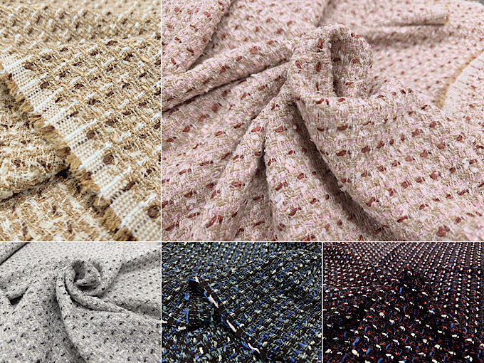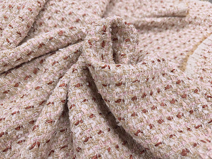 丁寧に作られたこちらのファンシーツイード生地は、上品な雰囲気がございますのでスカートやジャケットなどのハンドメイドにおすすめです。