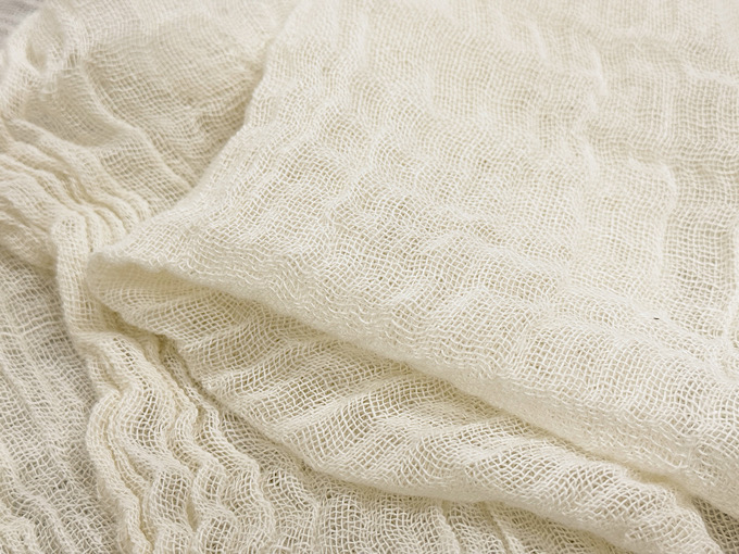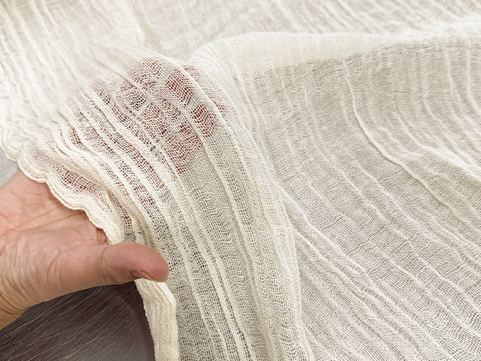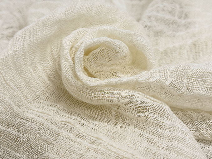 手触りは柔らかく、軽やか。ふんわりとしたシルエットはストールやスカーフにぴったりです。 透け感がございますのでカフェカーテンのハンドメイドにもおすすめです。