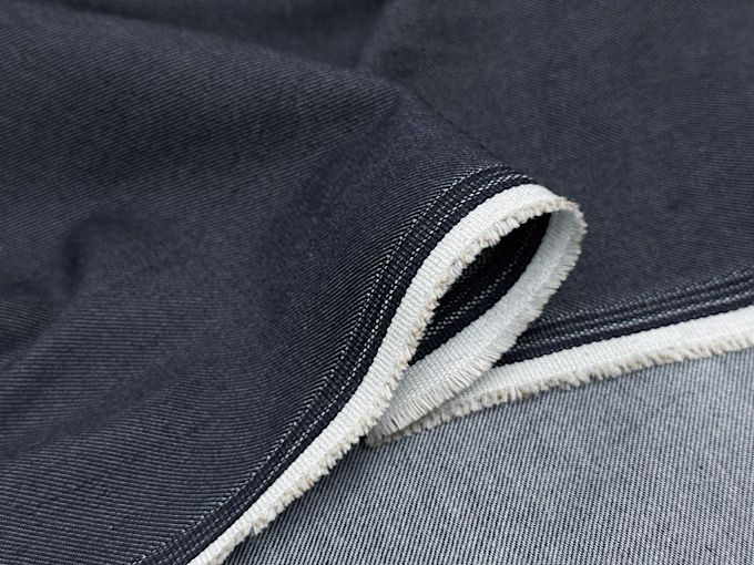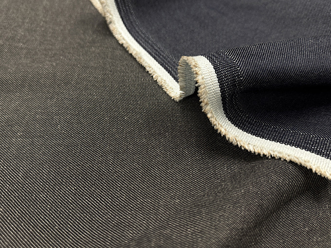 「岡山県倉敷市」生まれ140㎝幅のリヨセル混デニム生地です。再生繊維である「リヨセル」を織りこみ、柔らかく仕上げました。