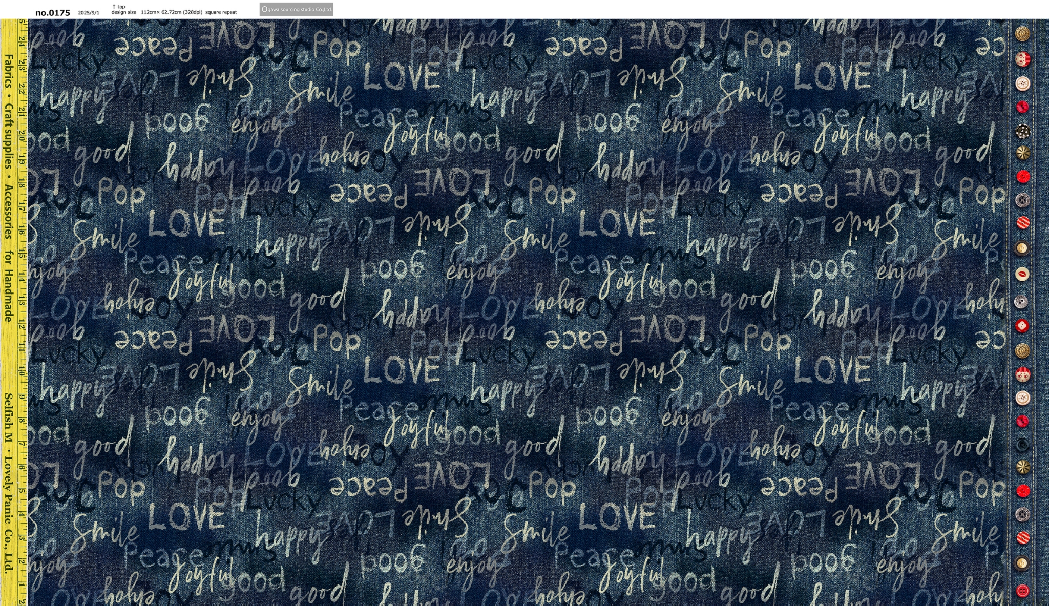 両端には様々なデザインのボタンや定規がプリントされ楽しい一枚となっております。