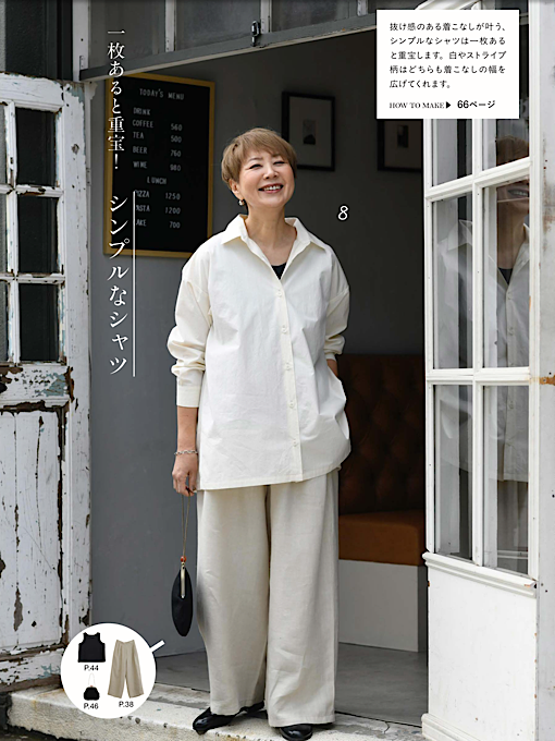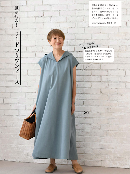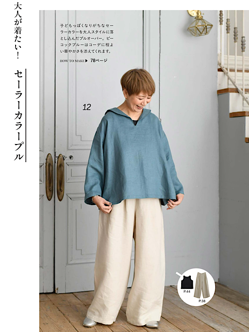 60代の大人気主婦ブロガー&インスタグラマー「あっこたん」こと金子敦子さんが提案するソーイング本第2弾。金子さんが今、気になる「上品でエレガント」な要素を取り入れつつ、作りやすさにもこだわったお洋服満載の一冊。トップス、ボトムス、ワンピース、アウター、バッグなど、本のアイテム同士でコーディネートを存分に楽しめる。着まわし例もたっぷり掲載。S・M・L・LLサイズ展開で実物大の型紙つき。
