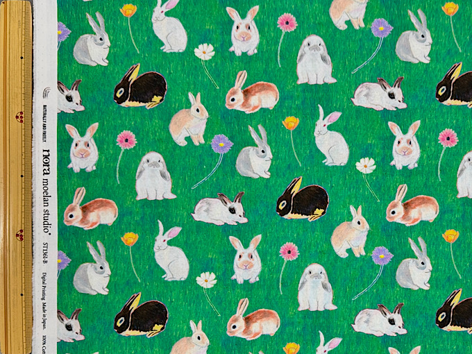 『nora.』野原のうさぎ達のシーチングプリント