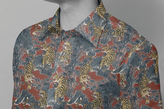 ヴィンテージ風に仕上げた上質なシーチング生地に優雅な和調に描かれた鶴をプリントしました。肌触りの良いシーチング生地なのでシャツや着物の装飾、帯などの制作におすすめです。