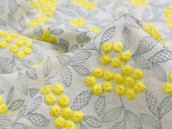 ペンペン草をモチーフにし北欧テイストに描いた、綿麻キャンバスプリント生地です