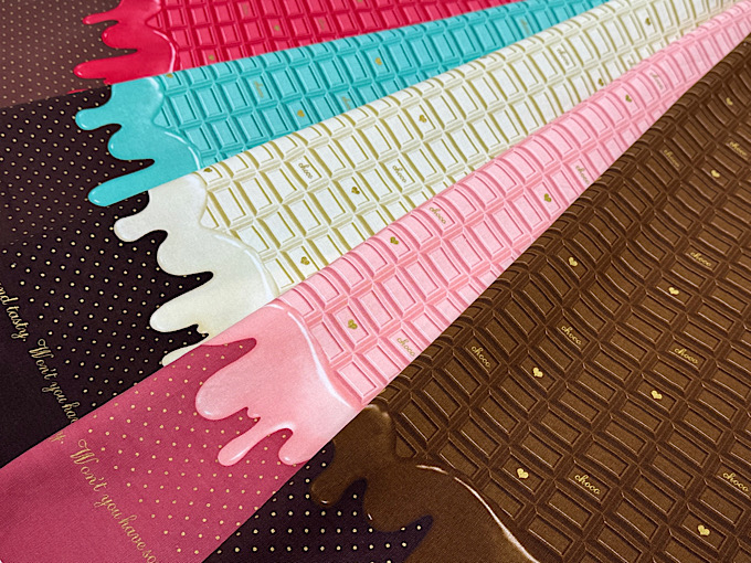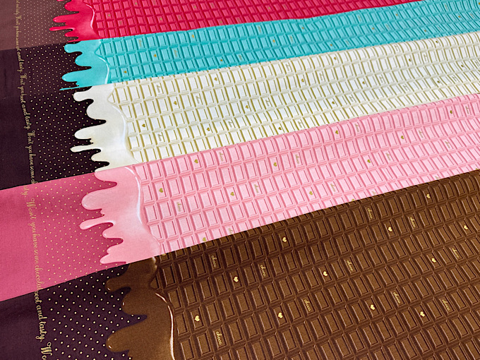 ア・ラ・カル堂さんのイラストレーション「チョコレートアパートメント」を元に企画したシーチングプリント生地です 住人たちがほっこりと暮らす世界には、そのモチーフひとつひとつにストーリーがこめられています