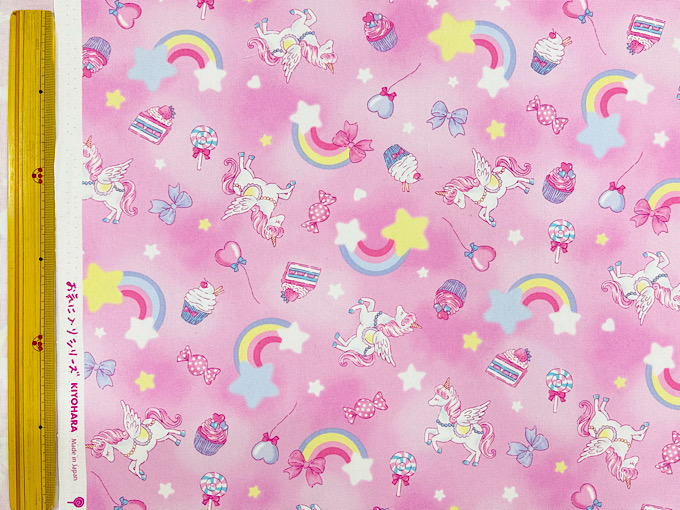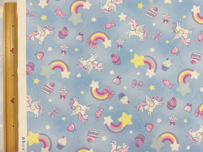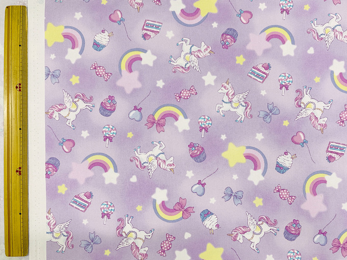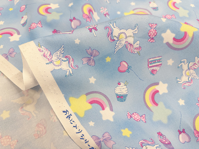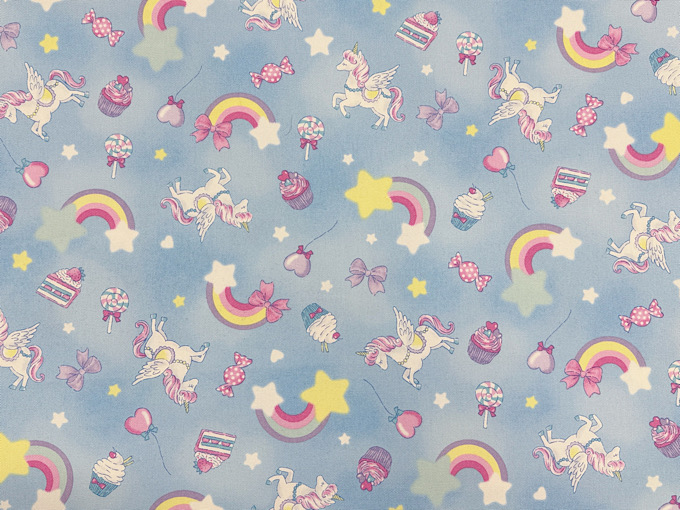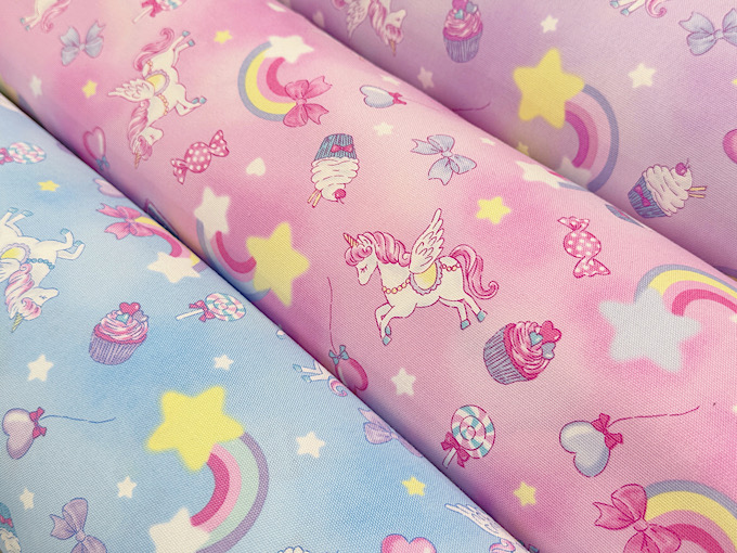 ゆめかわな世界観がかわいいユニコーンモチーフのオックスプリント生地です。使いやすい柄の大きさなので巾着や体操服入れにもばっちり!