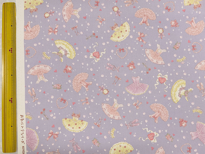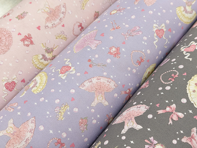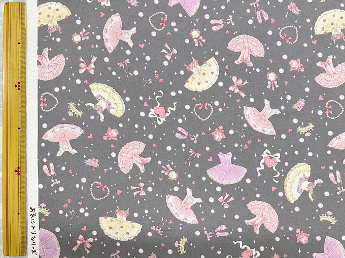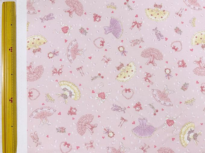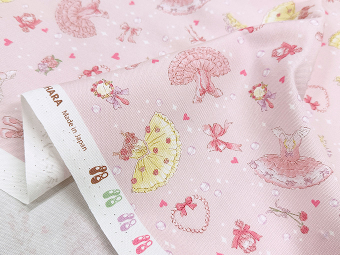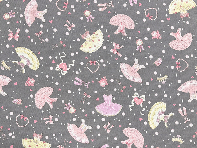 キラキラしたパールやハート、バレエドレスがかわいいオックスプリント生地です。使いやすい柄の大きさなので巾着や体操服入れにもばっちり!
