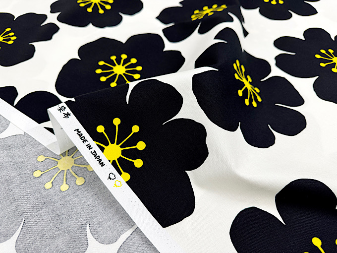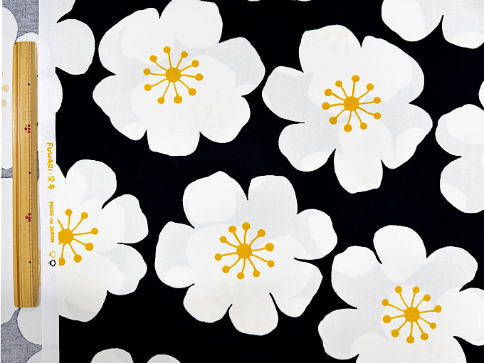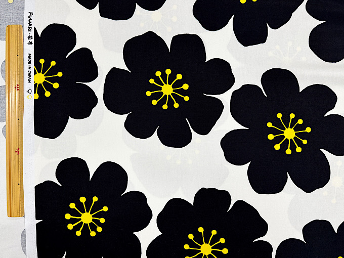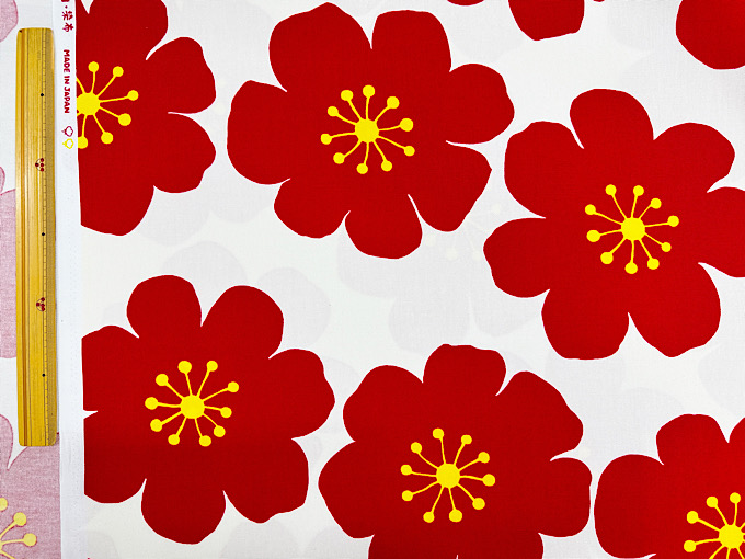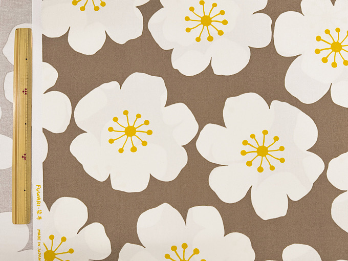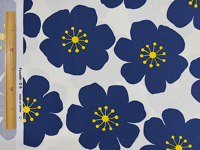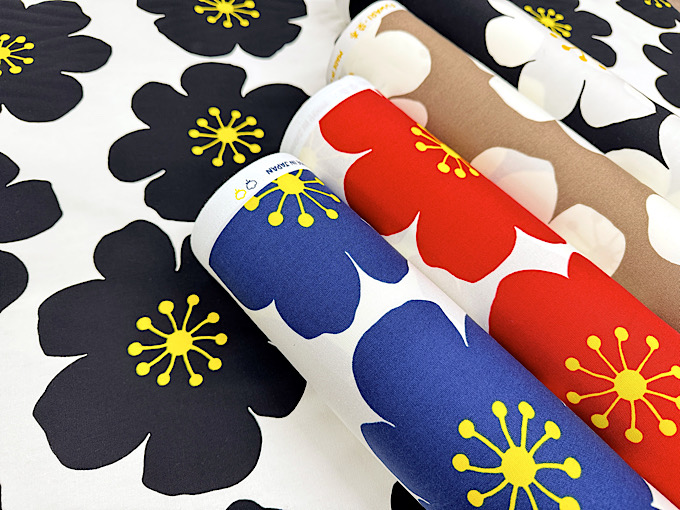 北欧調の雰囲気を持ったかわいいオックスプリント生地です。こちらはとっても大きな花が特徴的なデザインです。程よい厚みのオックスプリント生地なので、スカートやシャツ、バッグ、エプロンなどのハンドメイドにおすすめです。