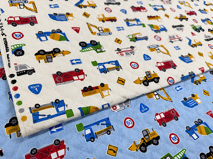 【お気に入りシリーズ2026】の人気柄「はたらく車たち」がキルティングになって登場!
