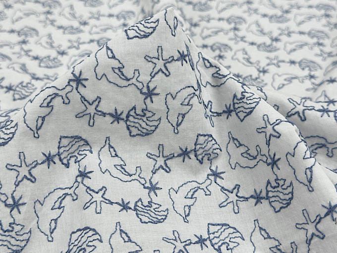 夜空に輝く星座とその名前が描かれたオックスプリント生地です
