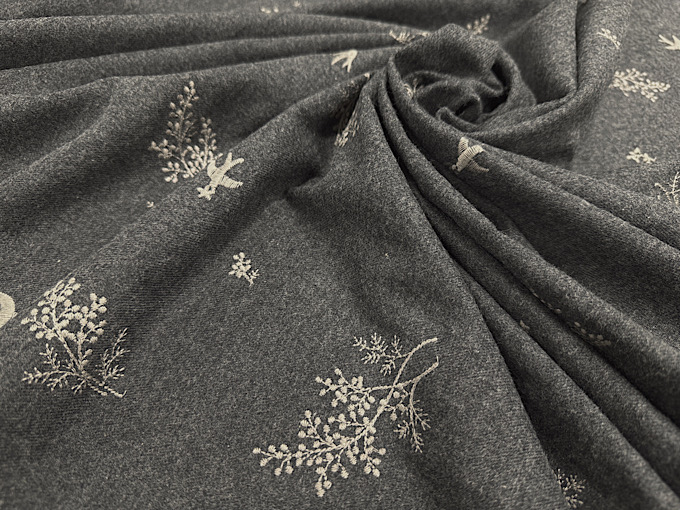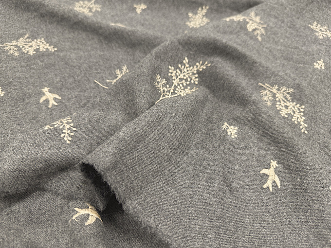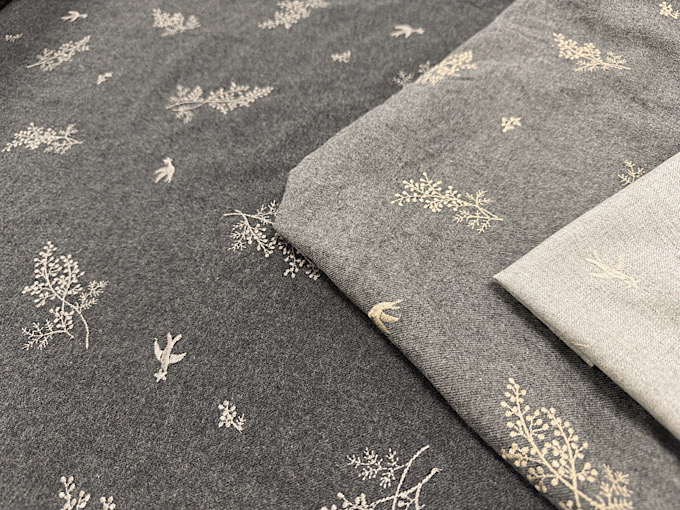 北欧調コットン杢ビエラ刺しゅう「ミモザ」