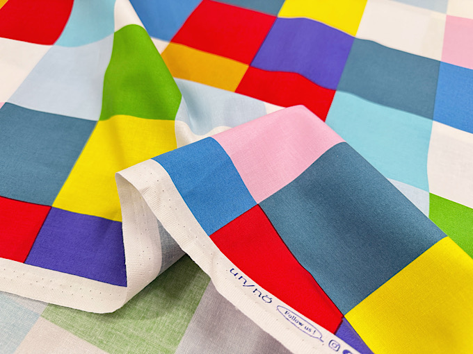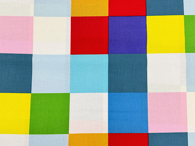アフリカンプリントで使用される伝統的なデザインをパッチワークした、アフリカン調シーチングプリント生地です