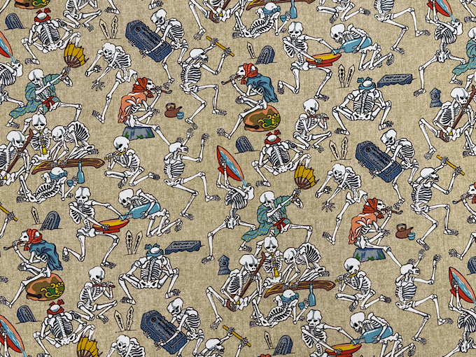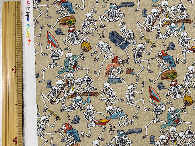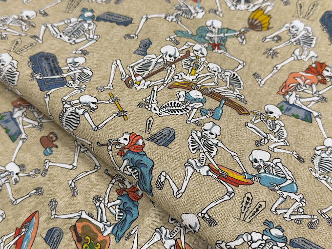 浮世絵風のお相撲さんがずらりと並んだ和柄のデジタルシーチングプリント生地です