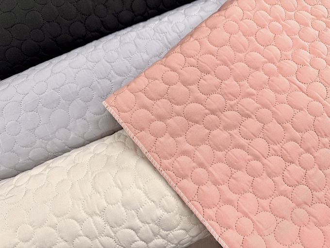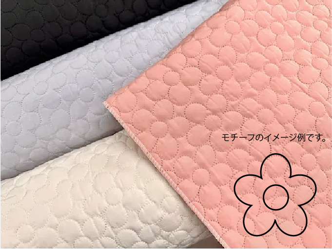 上品なカメリアがふっくらシンプルにステッチされたコンピューターキルティング生地です 絵本バッグやシューズ入れなどの入園入学グッズづくりにもおすすめです