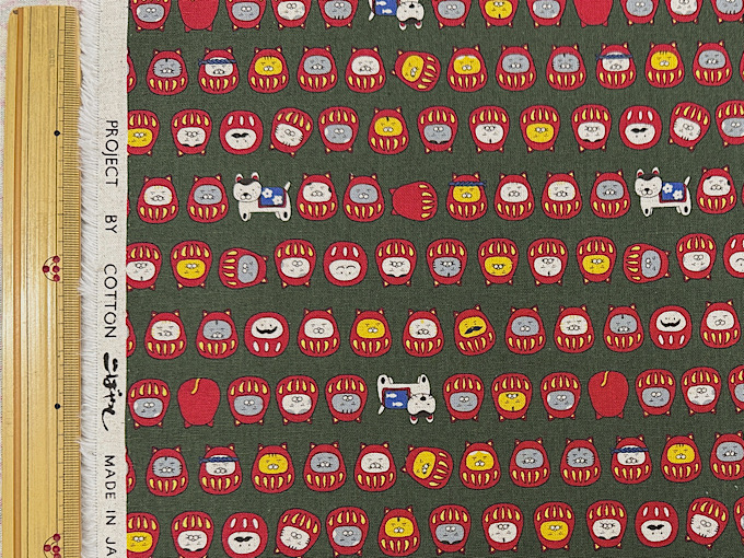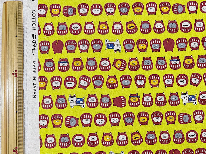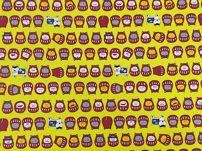遊び心たっぷり!ニャンコによる西遊記の世界観が楽しいコットンリネンキャンバスプリント生地です