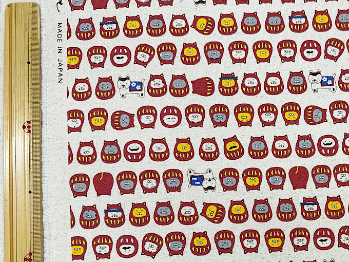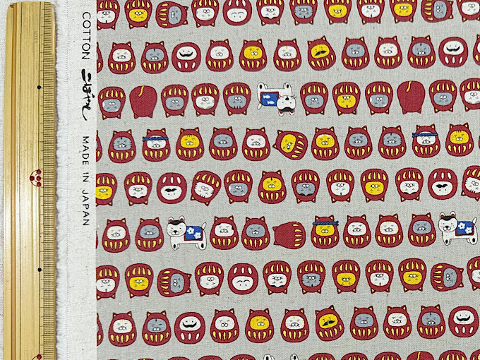 にゃんとかわいい!生地いっぱいにかわいらしい招き猫がいっぱいプリントされた綿麻キャンバスプリント生地です