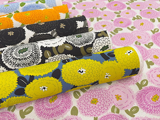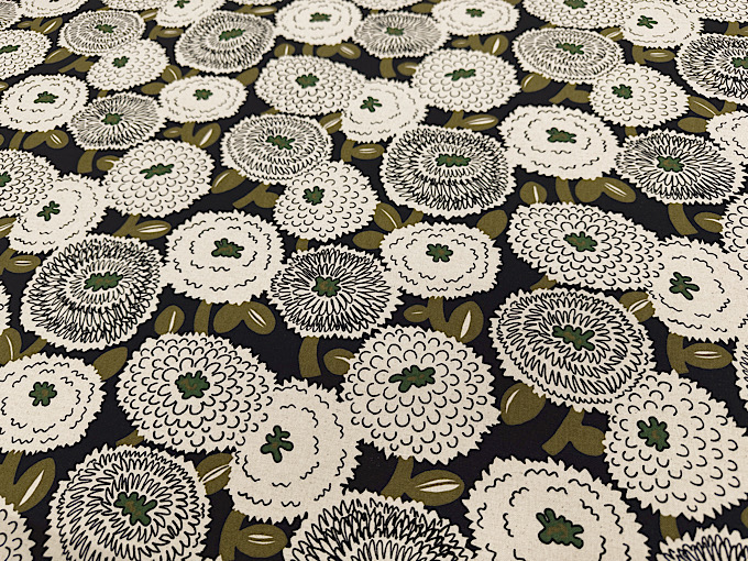 限定復刻!まるいお花のオックスプリント「北欧の森」