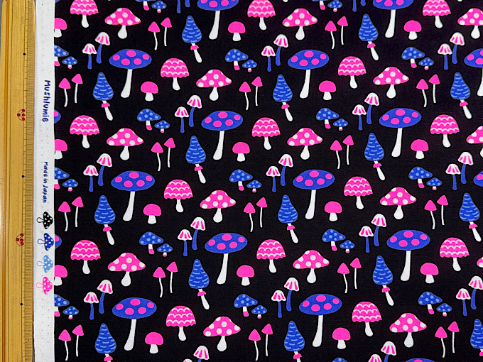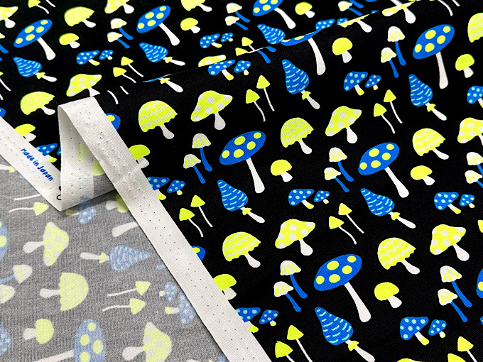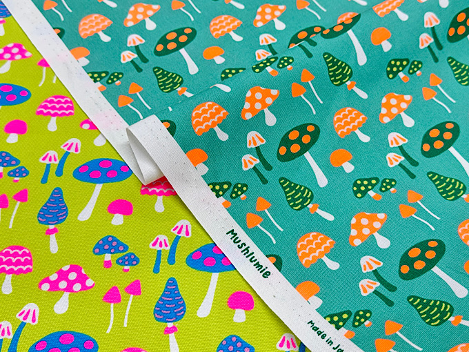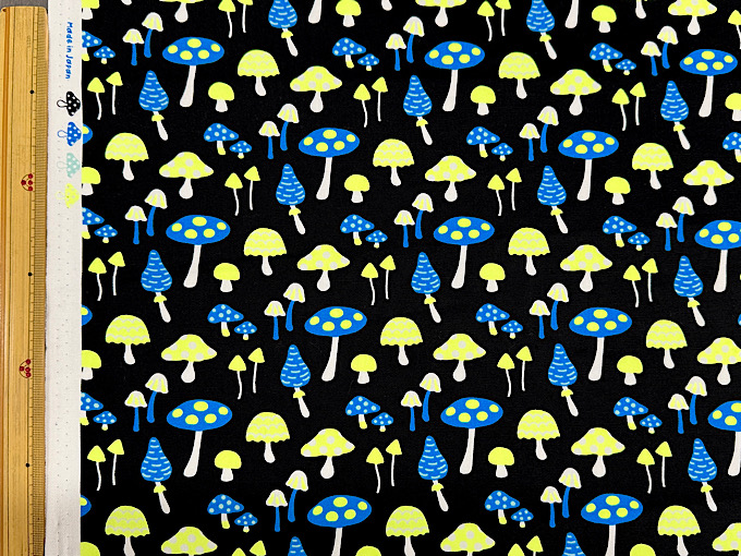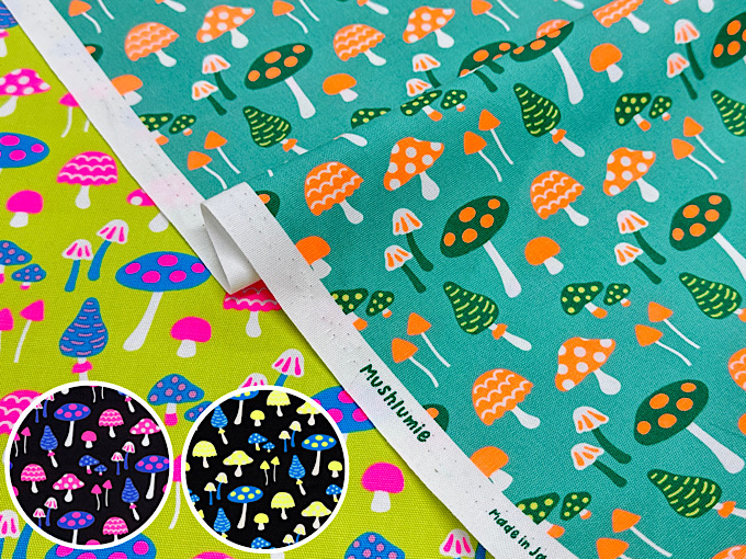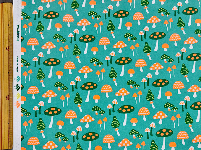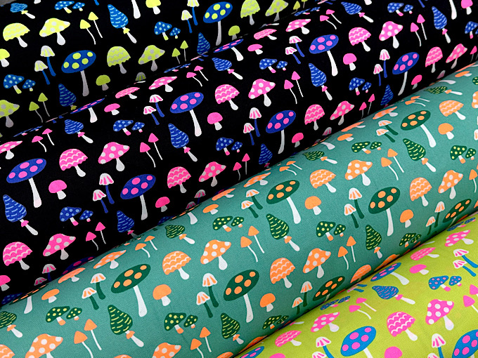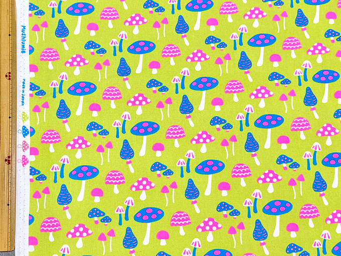 マッシュルームと蛍光カラーが組み合わさった、クールでお洒落なオックスプリント生地です。