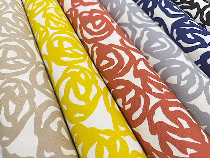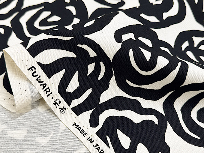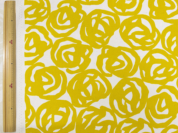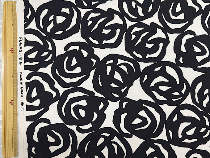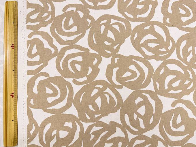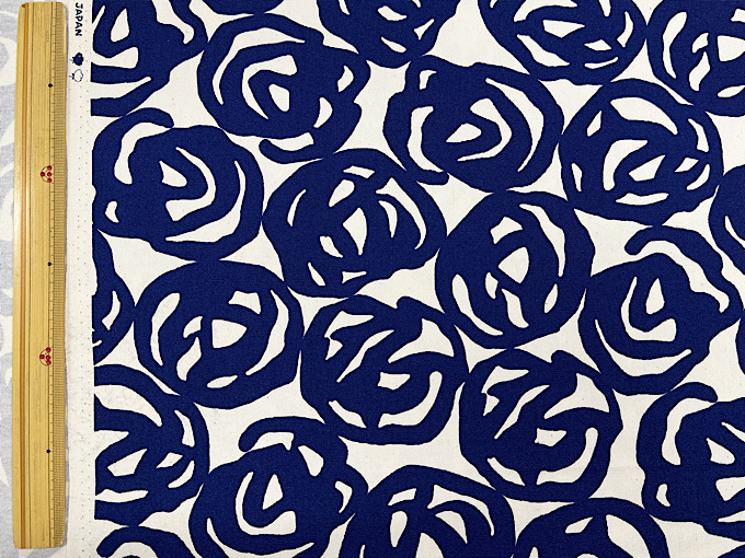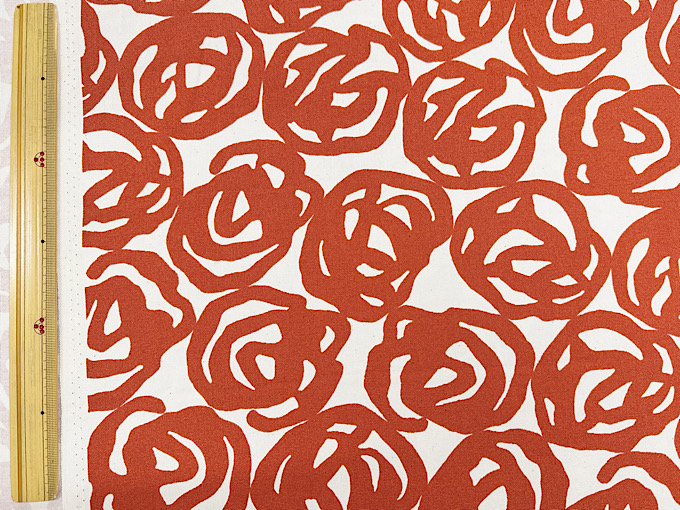 薔薇がアーティスティックに表現された北欧調オックスプリント生地です。程よい厚みのオックスプリント生地なので、スカートやシャツ、バッグ、エプロンなどのハンドメイドにおすすめです。※ナチュラルな風合いを残すため、黒いツブ(綿カス)が生地に含まれております。