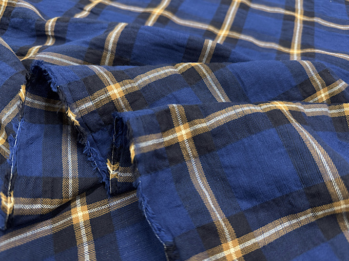 高品質な兵庫県播州産の生地が、数量限定お買い得価格! お洋服づくりにおすすめな先染ツイルチェック生地です