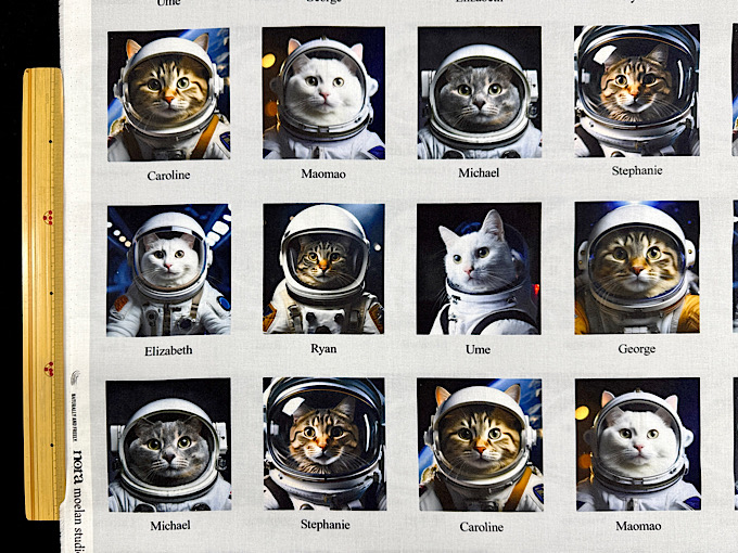 フワフワでモフモフの毛並みとクルっとした瞳が印象的なキャットプリント布地です