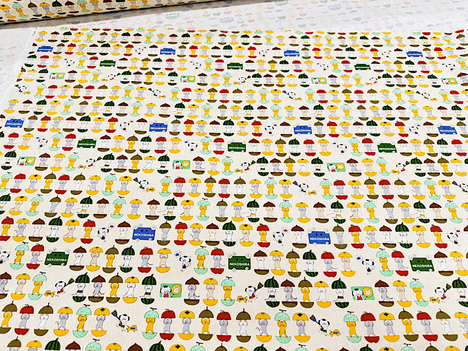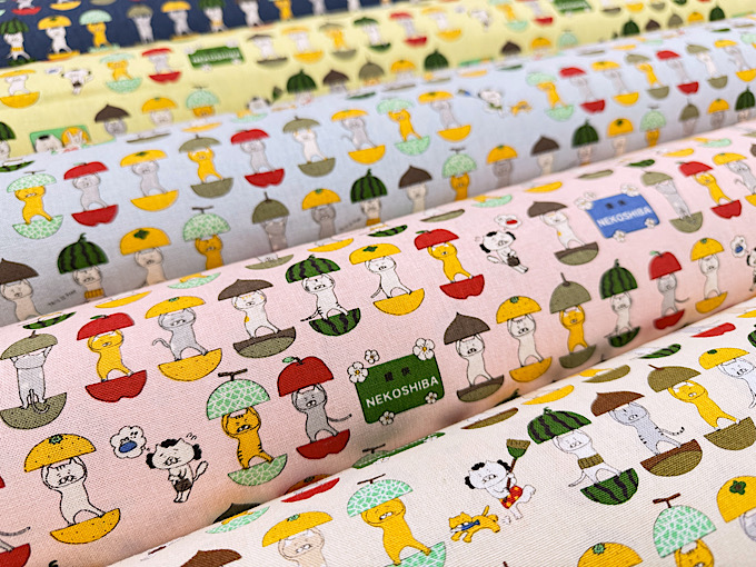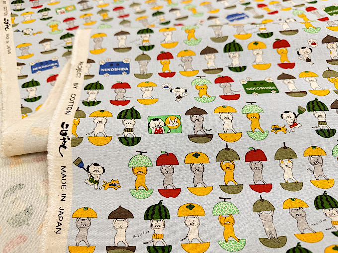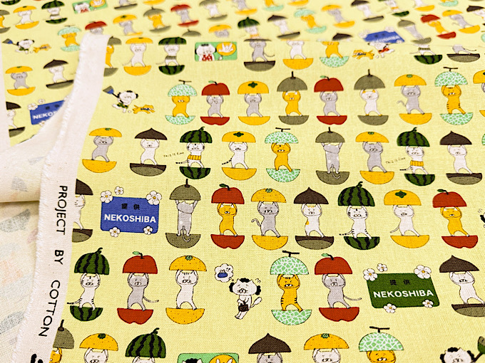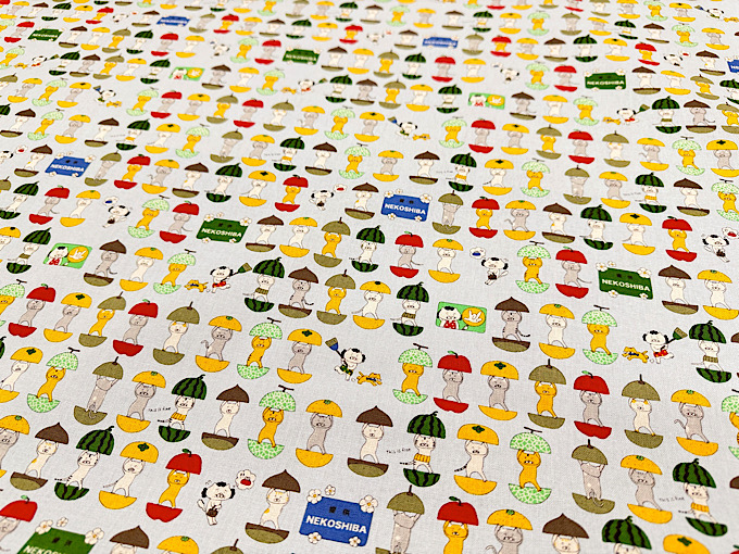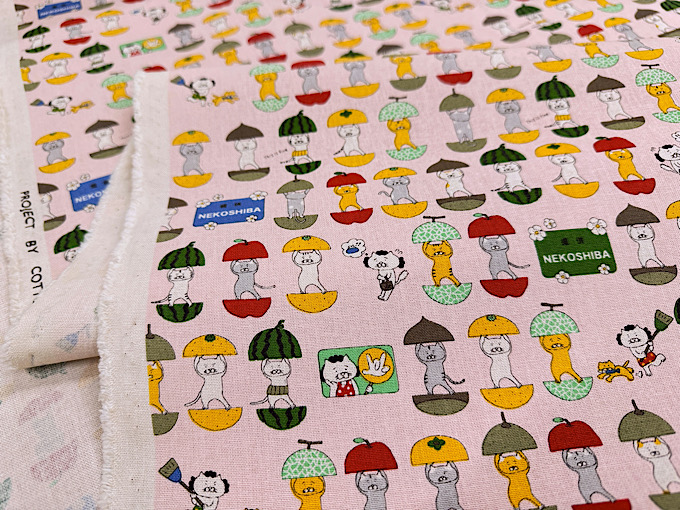 『小林繊維』 赤白ストライプがアメリカンな猫さんと、ポップコーンにかくれんぼする猫さんが楽しくてポップなコットンキャンバスプリント布地です