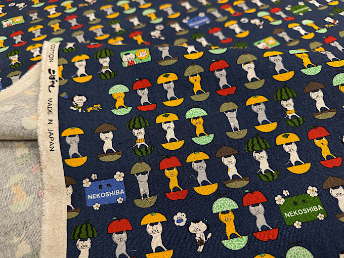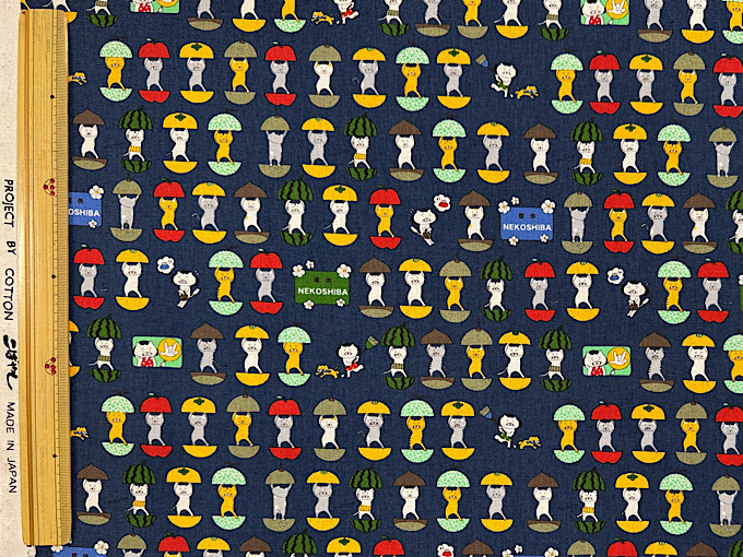 コットンこばやし綿麻キャンバスプリント「猫のお茶会」
