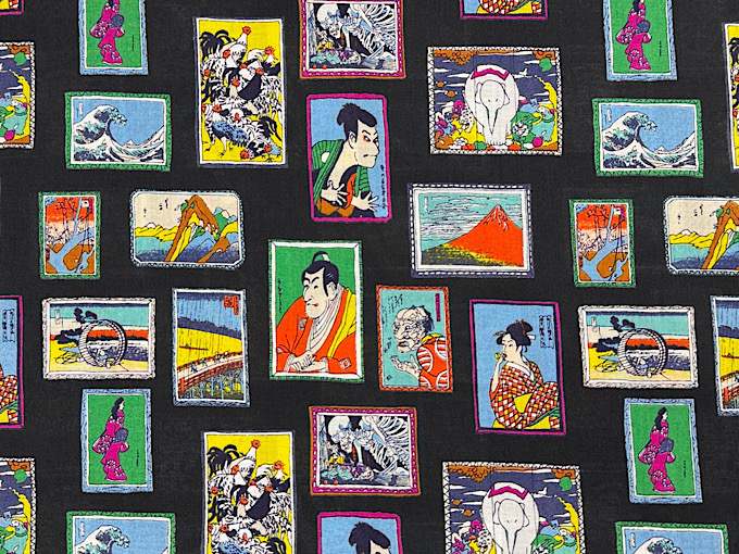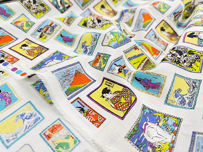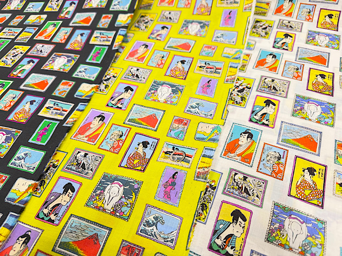 キルト作家武石正子さんプロデュース!「Love」「peace」「enjoy」などの英語が書かれたデニムをプリントで再現したシーチングプリント布地です