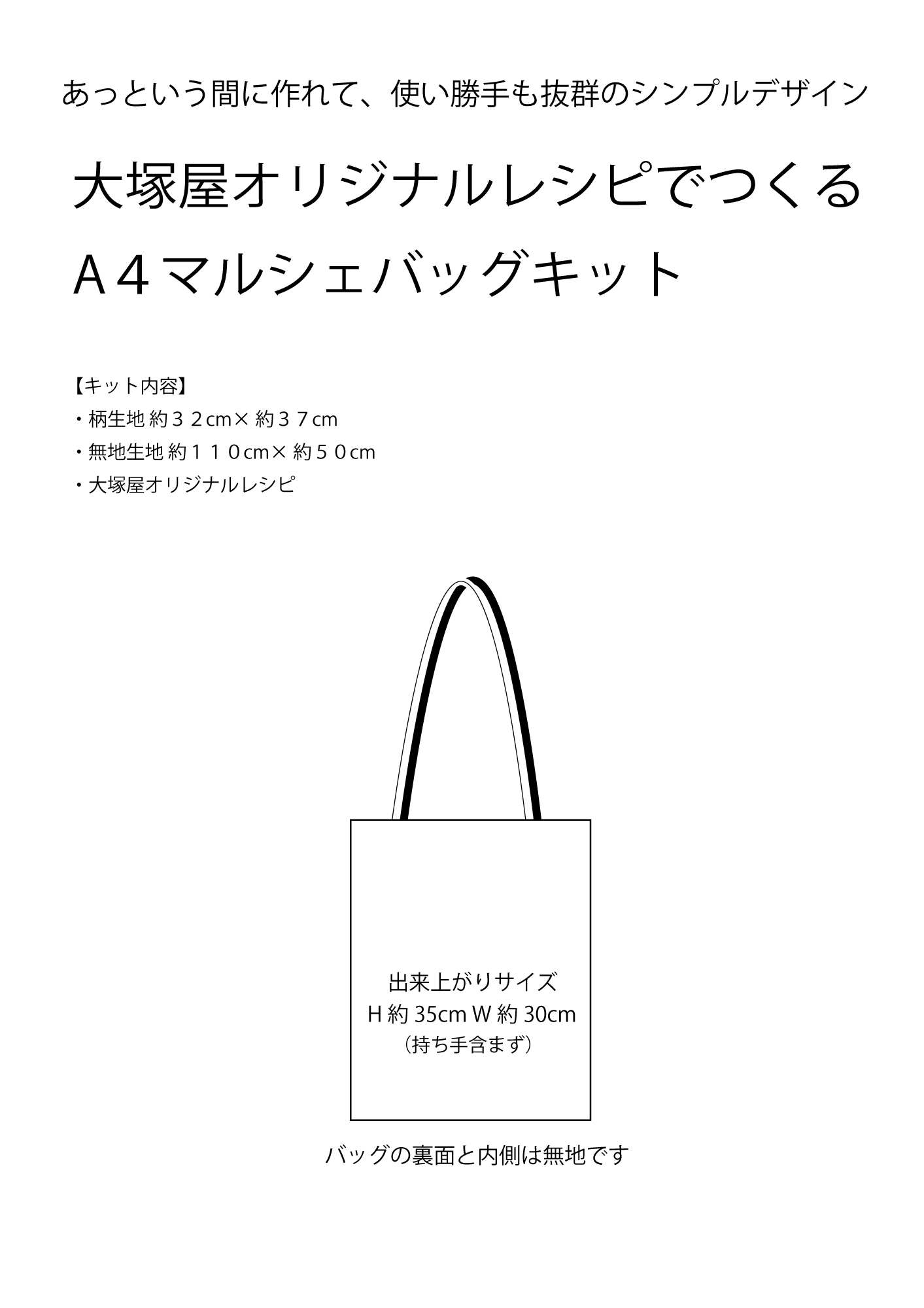 A4サイズが入る『mingswim(ミンスイ)』一輪のバラのリバーシブルトートバッグのキットです 「布地2パネル分(約100cm)」と「レシピ」と「大塚屋の包装紙の鳥さんピスネーム」が入っているお買い得なキットです