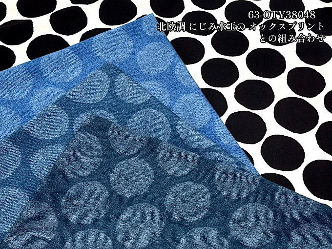 北欧調 にじみ水玉の オックスプリント