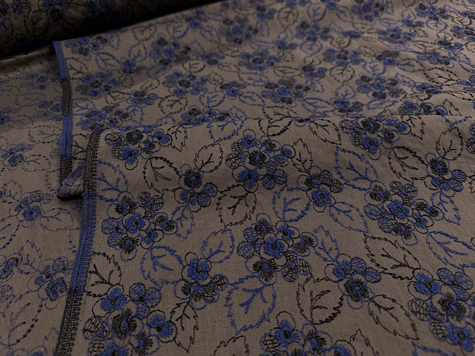 【現品限り特価】Exclusive Collection ブルー刺繍のフラワーローンレース
