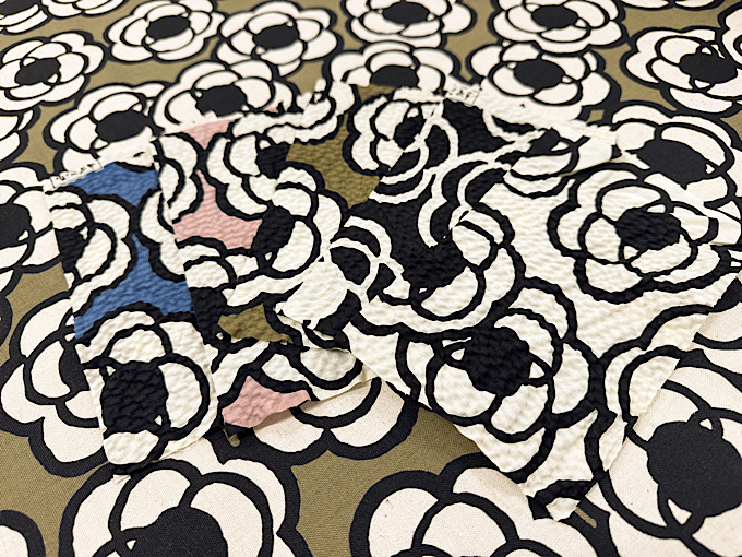 「紅葉つむぎ(もみじつむぎ)」 ドビークロスにハンドワッシャー加工を施すことで、ドビー独特の手触りに表面変化が加わり、まるで葉脈のように仕上がりました その姿からこちらの生地は「紅葉つむぎ」と名づけられました