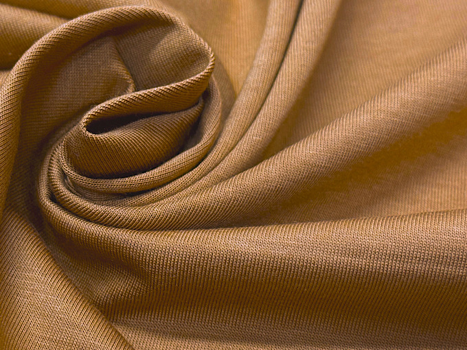 撚糸からこだわった糸の持つサラッと感、上品なドレープ、マットな美しい光沢感が特徴です。ハイゲージ(ニット編み機の針の密度が高く、編み目が細かくて密に編み込むこと)で編むことによりコンパクトでハリのある風合いに仕上がっています。通気性に優れたさらりとした肌触りの薄手ニット生地なので、Tシャツ、カットソー、インナー、ベビー服、部屋着(パジャマ)、シーツや枕カバーなどのハンドメイドにおすすめです。