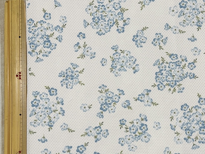 大塚屋と「小泉株式会社ライフテックスカンパニー」さんがコラボ! 『綿麻プリント 「モーメント・ジプソフィラ」』のデザインをクールクロスニット布地にしました キシリトール等の後加工をせずに、糸、糸形状、編み組織を組み合わせて生地にしているので半永久的に冷感効果が持続します