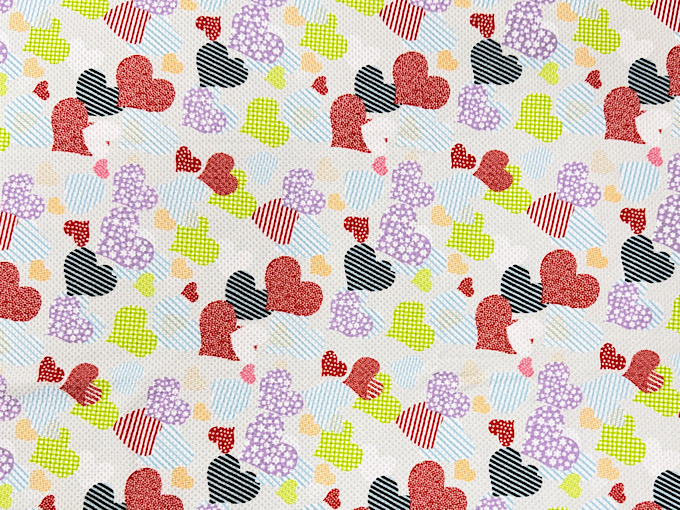 トイプードルやヨークシャテリアなどかわいいワンちゃんたちをふわふわのホイップで表現したシーチングプリント生地です