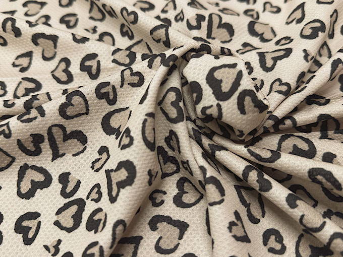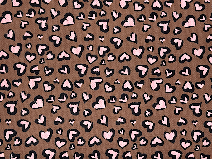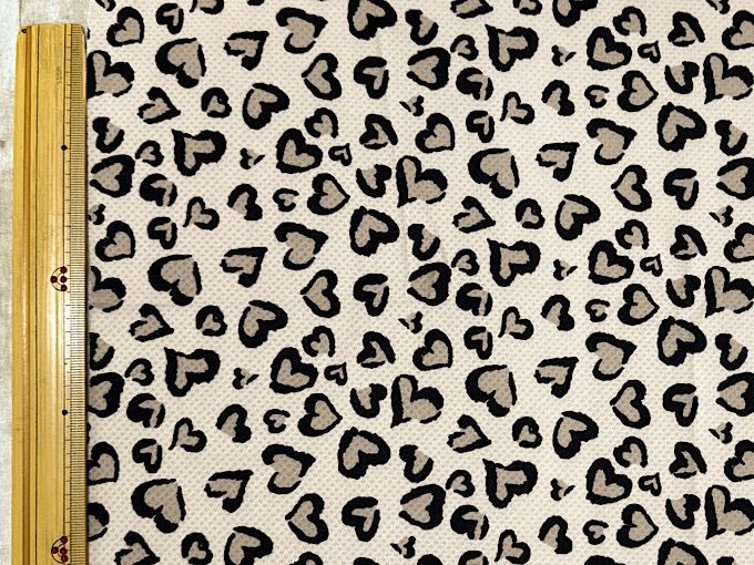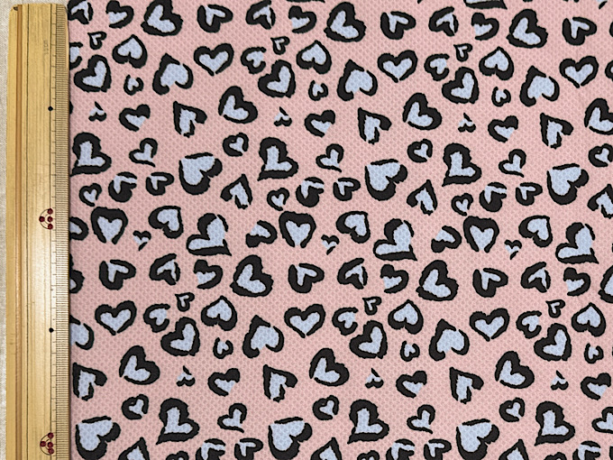 冷たくてひんやりと気持ちが良い接触冷感ニット生地です。ハート模様になったレオパードデザイン♪